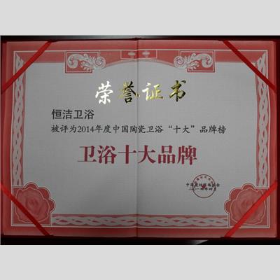 奖 项:2014年度中国陶瓷卫浴“十大”品牌榜 卫浴十大品牌