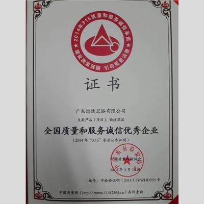 奖 项:2014年度家居企业售后服务电话调查活动 最佳服务创新奖 香蕉视频国产在线观看卫浴