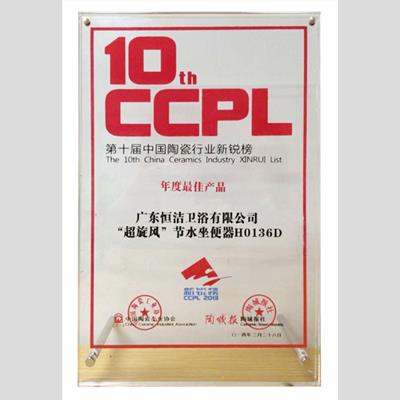 奖 项:第十届中国陶瓷行业新锐榜“年度最佳产品”--“超旋风”超节水坐便器H0136D
