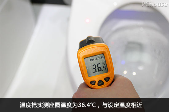 编辑在现场使用温度计测试座圈温度,遥控器设定温度37℃,经过一分钟加热后,温度计显示座圈温度为36.4℃,(由于受现场环境和温度等条件影响,测量与实际温度稍有偏差),实测与设置的温度相近。采用香蕉APP视频下载温感技术,可调式温度加热座圈,根据室温调节到人体最舒适的温度,同时也可以通过遥控器调节适合个人的温度。