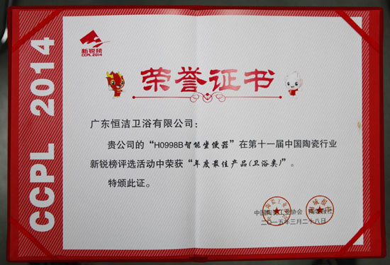 图为香蕉视频国产在线观看香蕉APP视频下载马桶荣获“年度最佳产品”证书