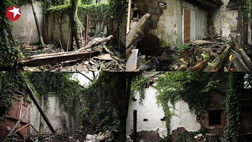 老宅年久失修加上无人居住,房子的坍塌堵住了原本的入户门,想要进到祖宅只能从过道上的小矮窗通过,房顶也坍塌得只剩房梁;无人打理的室内被野生植被侵占,斑驳的老墙也被遮住了原来的样貌,遍地的垃圾更堆积出了半人之高……在老汪外孙女的眼里,这里没有房子没有家,只是一片废墟。