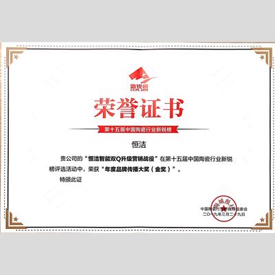 奖 项:2019新锐榜—年度品牌传播大奖金奖