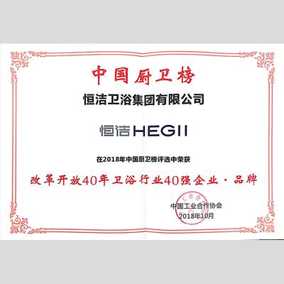 奖 项:改革开放40年卫浴行业40强企业·品牌