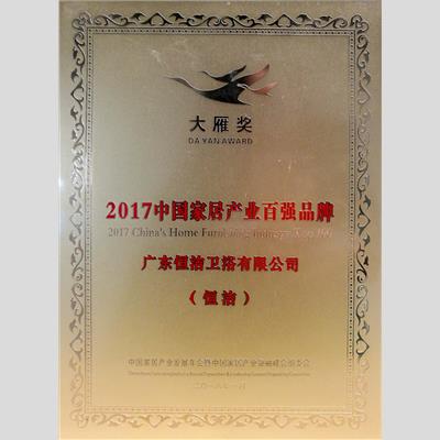 奖 项:大雁奖 2017中国家居产业百强品牌