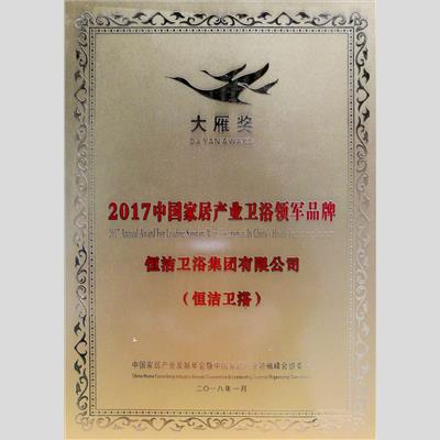 奖 项:大雁奖 2017中国家居产业卫浴领军品牌
