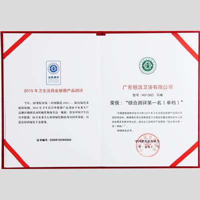 奖 项:2015年卫生洁具坐便器产品测评 综合测评第一名(单档)【H0136D】