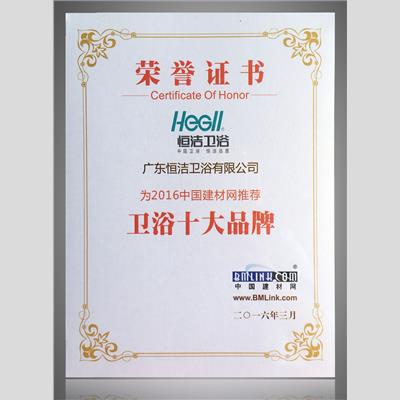 奖 项:2016中国建材网推荐 卫浴十大品牌