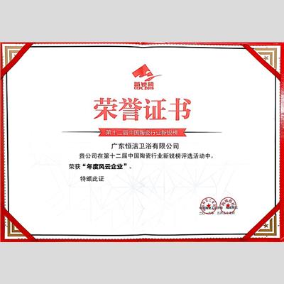 奖 项:第十二届中国陶瓷行业新锐榜-年度风云企业