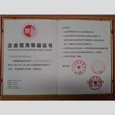 奖 项:企业信用等级证书AAA级-复审通过