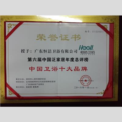 奖 项:第六届中国泛家居年度总评榜-中国卫浴十大品牌
