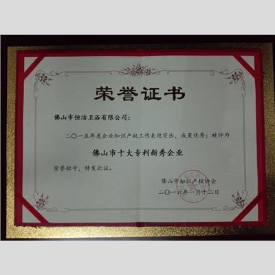 奖 项:二〇一五年度佛山市十大专利新秀企业