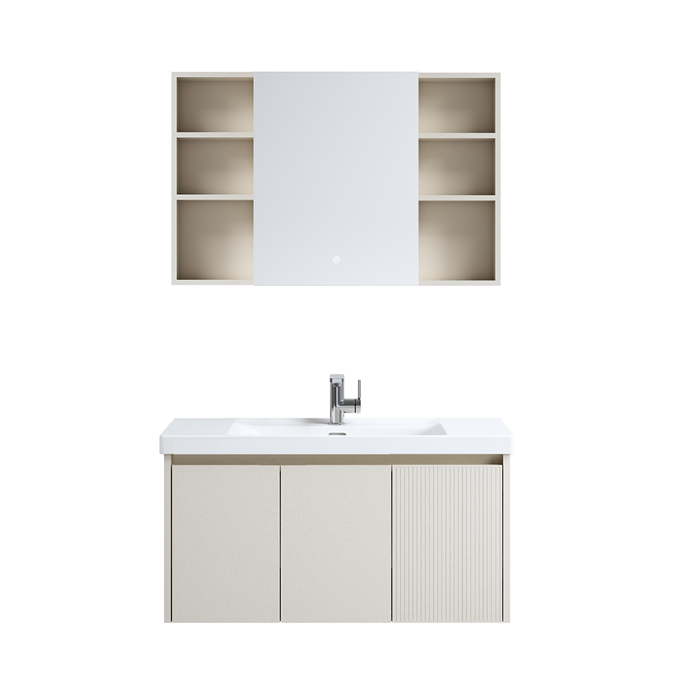 - 合理收纳分区:双开门主柜,方便大件物品收纳;镜柜内部高低分层(168/174/244/301mm)满足不同高度物品放置;底层左侧带抽纸孔设计,左手抽取纸巾,右手拿取常用高频使用物品,合理设计使用动线