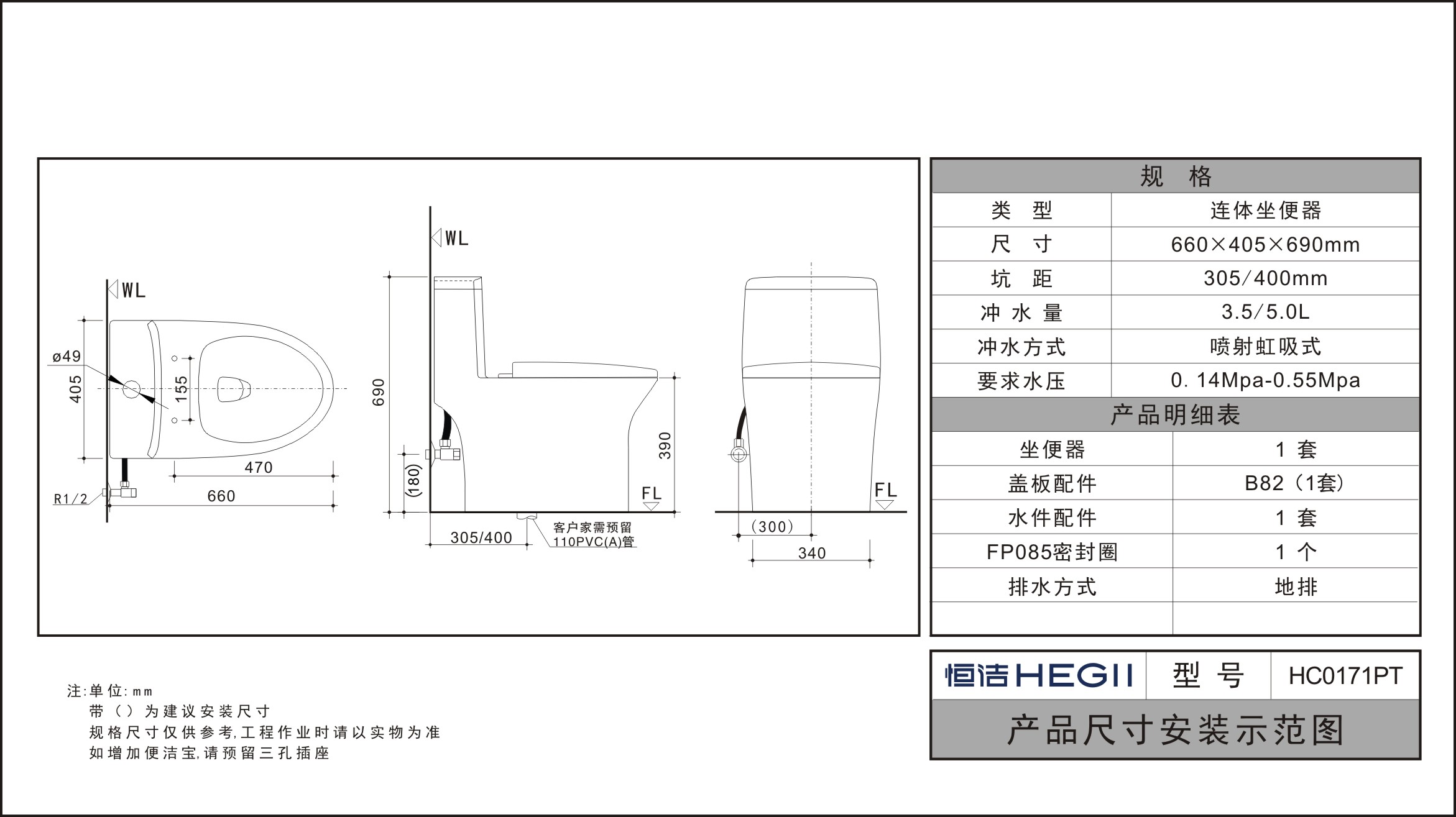 坑距:305/400mm