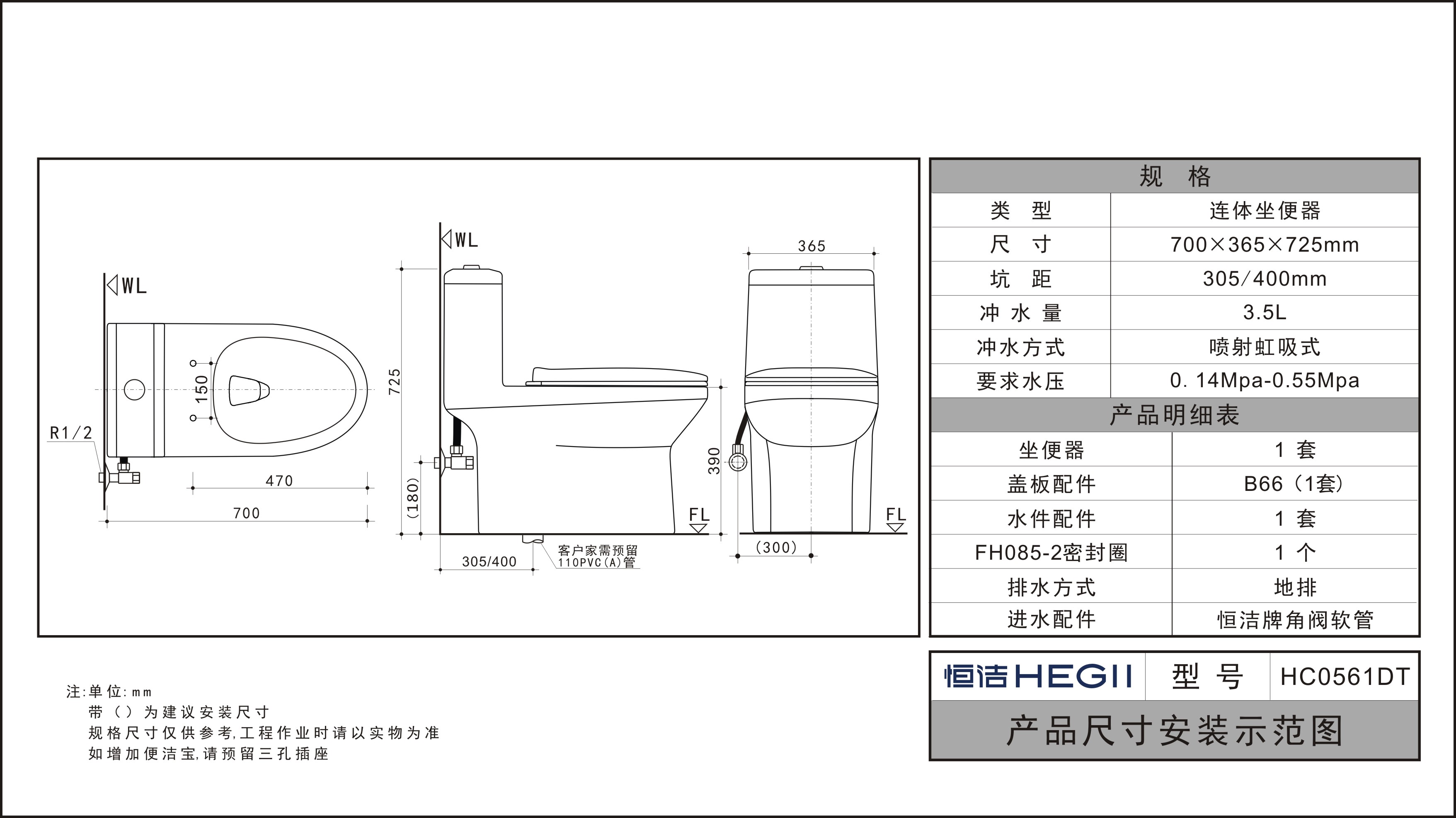 一次冲净,只需3.5L水,节水达40%